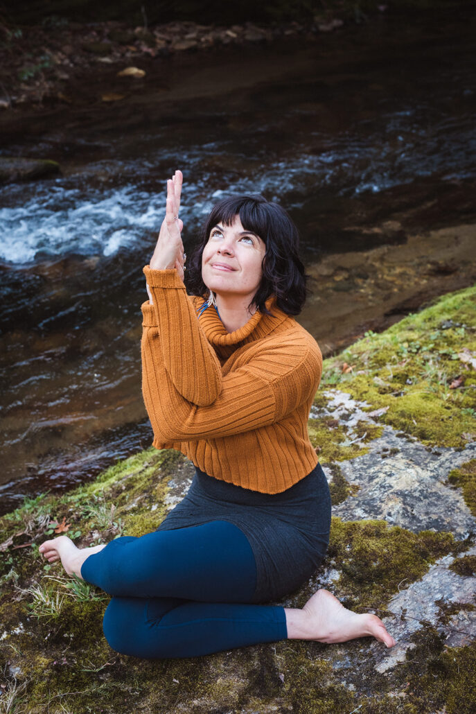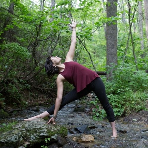 Maeve Hendrix is a yoga teacher and mental health therapist who loves integrating eco-somatics, nervous system awareness, and vast permission to experiment, play and rest into her own personal yoga practice. She has been teaching yoga for 14 years and leading yoga teacher training modules at Asheville Yoga Center for the last five years. Maeve has a private counseling practice in Asheville, NC and spends much of her free time romping and napping in the forest with her dog, Theo-Dragon.